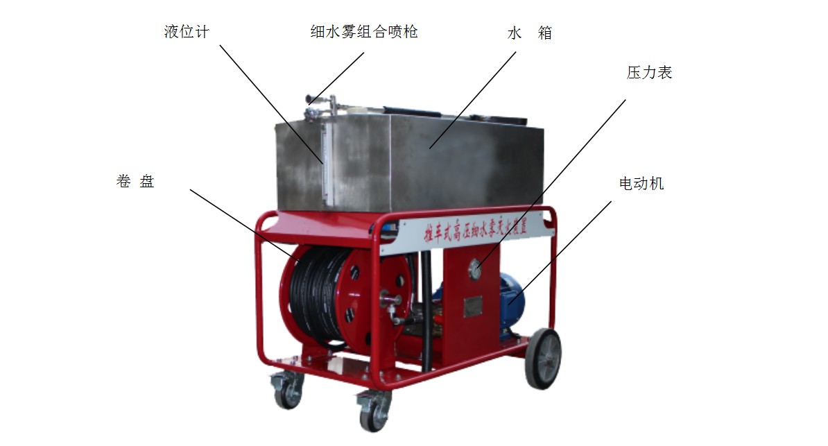 移动式高压细水雾是以汽油机、柴油机、电动机或锂电池为动力源来进行移动,方便省力,可以随时进行移动灭火,灵活机动,可以作为快速移动的微型消防站进行使用,流量在10-30L/min范围内,可以根据需求来进行定制。