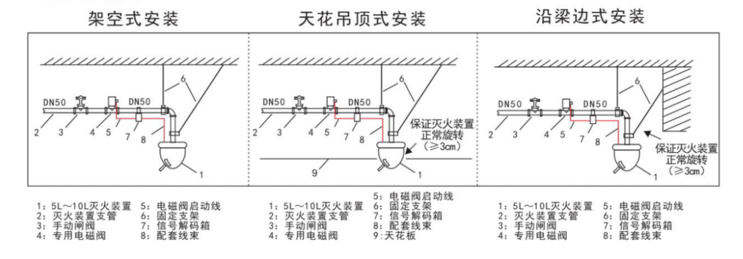 5、电磁阀与消防水炮的水管越短越好,但之间的长度不能小于10CM。