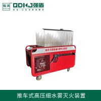 移动式高压细水雾整体结构是什么? 推车式高压细水雾 灭火装置 (电机型),以交流电动机为动力源,以自带水箱的水为灭火介质,可扑灭A类、B类、C类及电气设备火灾。该系列···